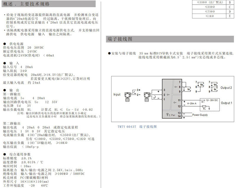 上一条: TMTY6042 1入4出 电流信号输入配电隔离器