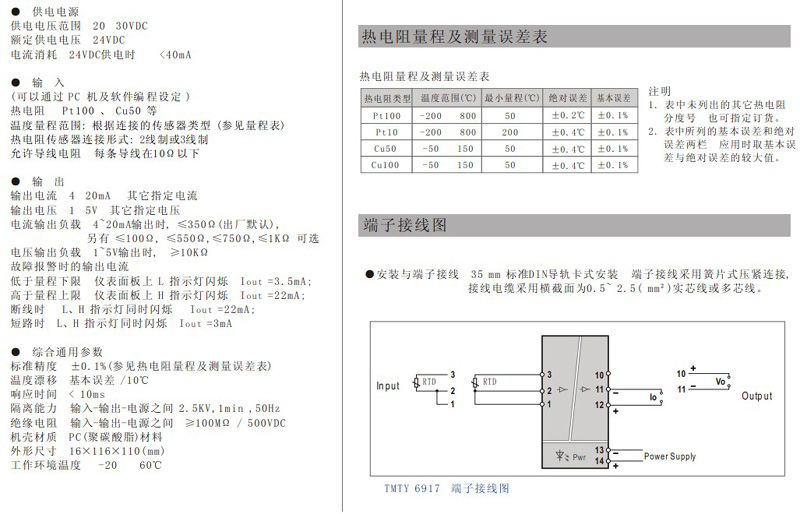 下一条:TMTY6918 智能型热电阻输入隔离变送器(1入2出)
