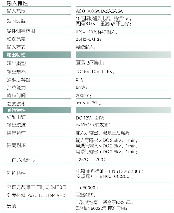 本产品采用特制隔离模块,对电网和电路中的交流电流进行实时测量,将其变换为0~5V、0~10V或1V~5V直流电压(UZ)输出;具有高精度、高隔离、低功耗、低漂移、温度范围宽、抗干扰能力强等特点。本产品采用卡装式结构,端子接线,安装方便,使用直流12V/24V电源供电,输入、输出、电源之间两两隔离。