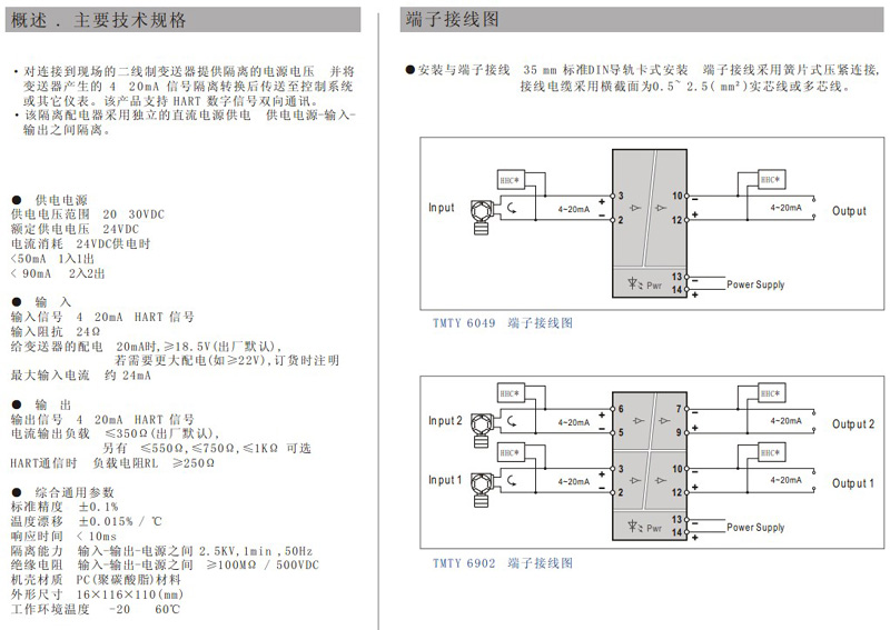 下一条: TMTY6711/6711C/6712/6712C 变送器电流输入,二线制隔离配电器
