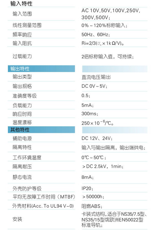 本产品采用特制隔离模块,对电网中的三相三线(△接法)交流电压或三相电机电压进行实时测量,将其变换为标准的直流电压(VZ)输出;具有高精度、高隔离、宽频响、低漂移、功耗低、温度范围宽等特点。本产品采用卡装式结构,安装方便,结构紧凑,适用于三相电力系统的实时检测。