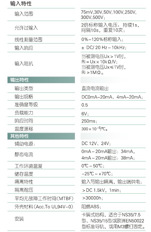 本产品采用线性光电隔离原理、平均值转换技术,对电网或电路中的交直流电压进行实时测量,将其变换为标准的直流电流(Iz)输出,具有交直流电压通用、高精度、高隔离、宽频响、低漂移、低功耗、宽温度范围及远距离传输等特点。本产品采用卡装式结构,端子接线,安装方便。适用于正弦波和双向直流电压的隔离测量。