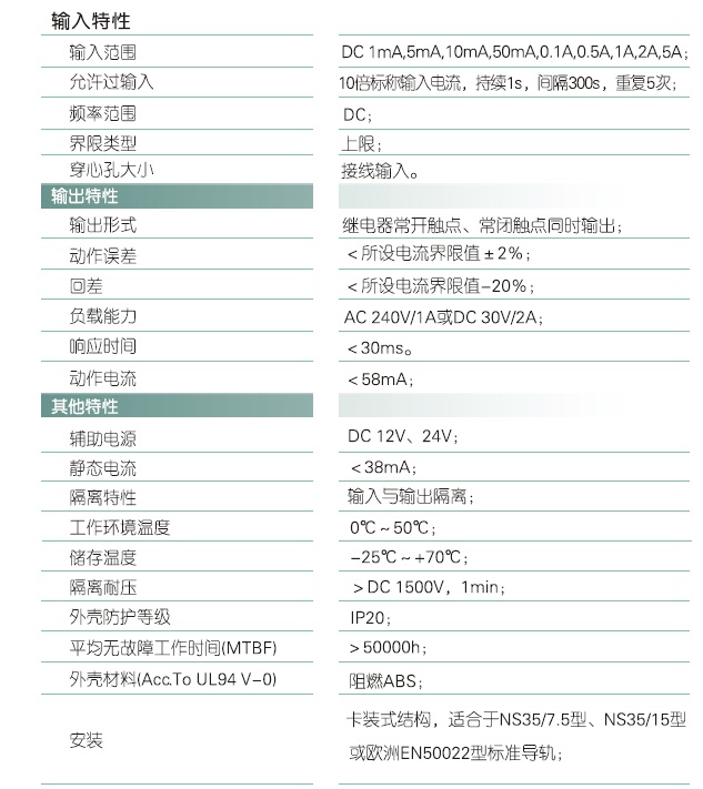 本产品采用光电隔离原理对电路中的直流电流进行实时监测,当直流电流超过所设定上限值时,输出越限报警信号,输出信号为继电器触点信号。在输入量程范围内,直流电流的动作界限值可以任意设置。该产品输入与输出完全隔离,具有高精度、高隔离、低漂移等特点。可应用于电机过载监测、电源损耗检测、动作验证、信号隔离转换等场合。