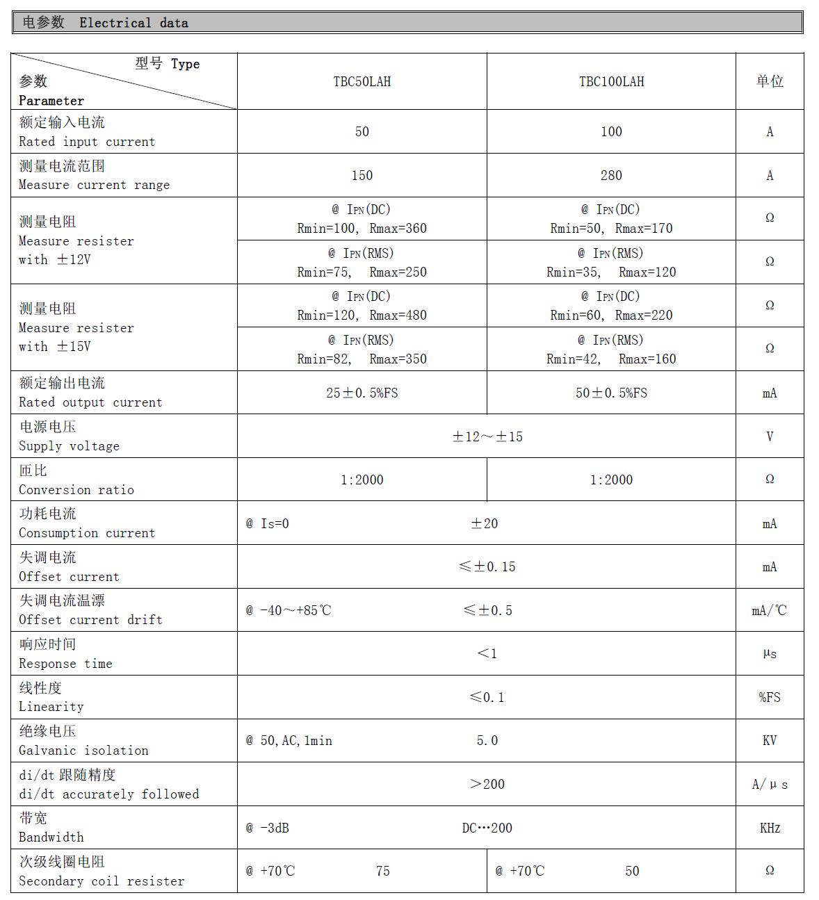 下一条:南京托肯TBC-U系列霍尔电流传感器/闭环型/穿孔式安装