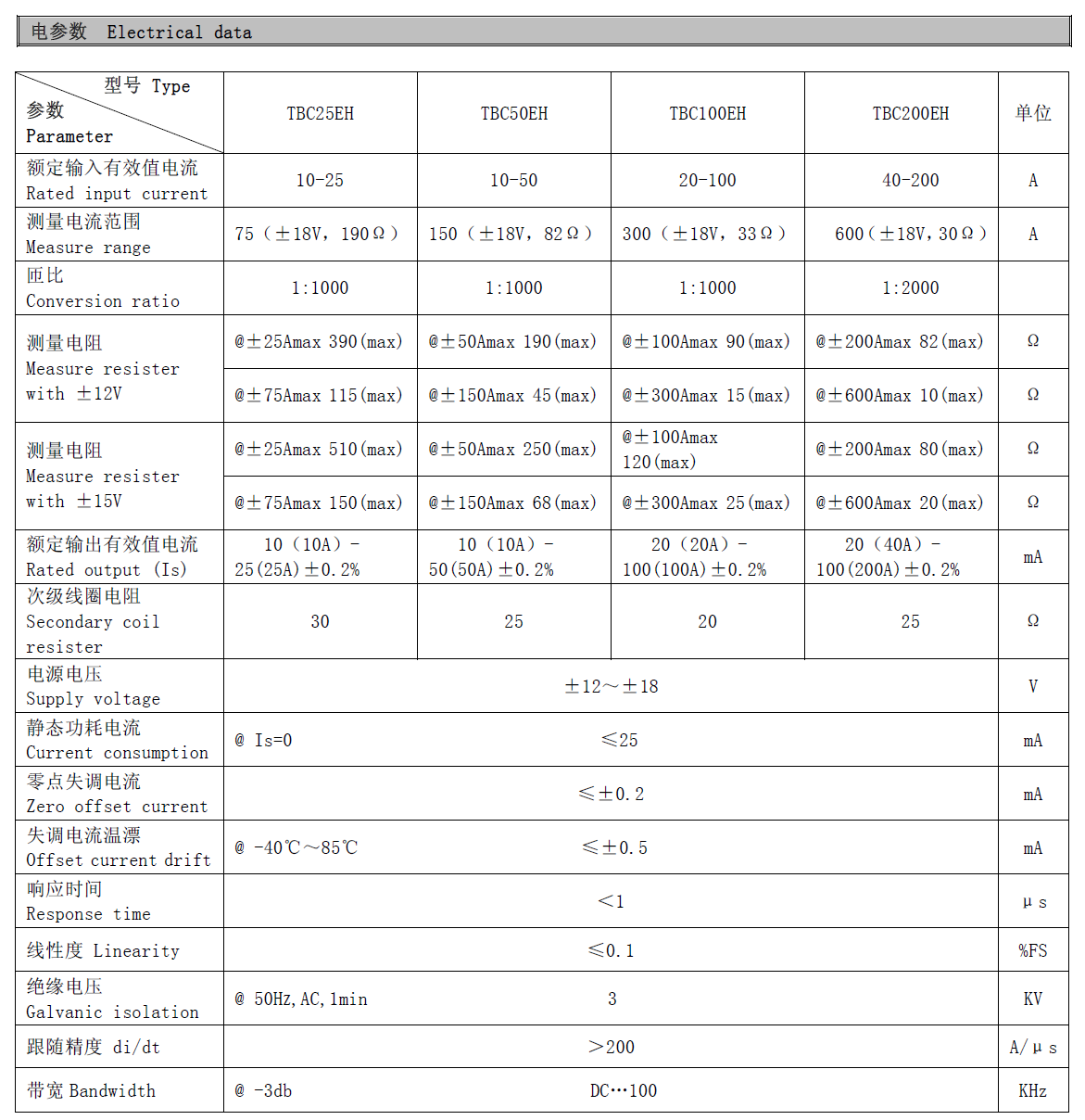 下一条:南京托肯TBC-EMA高精度霍尔电流传感器/闭环型