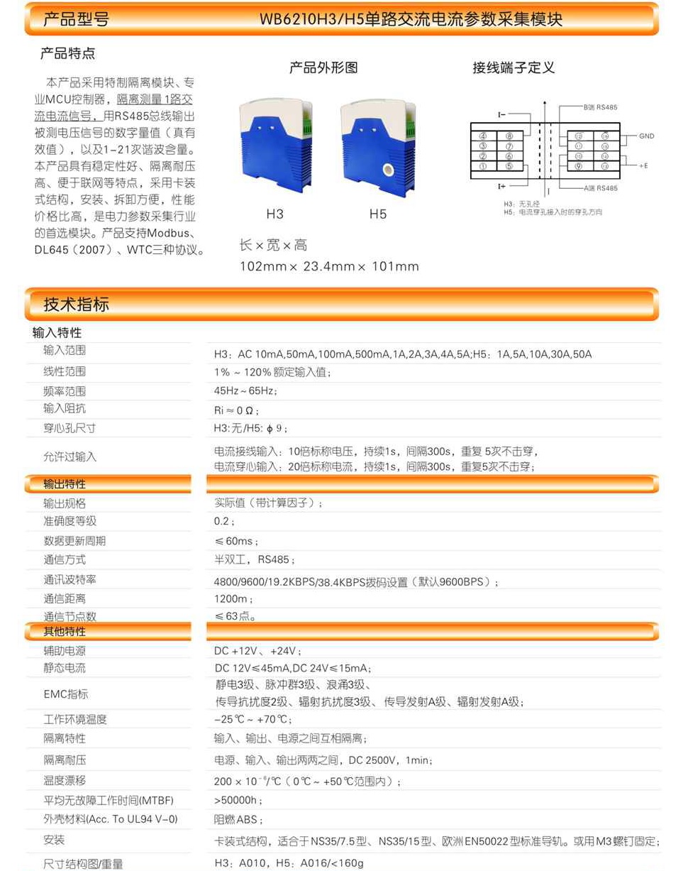 上一条:WB6410H3一路交流电压智能电量传感器
