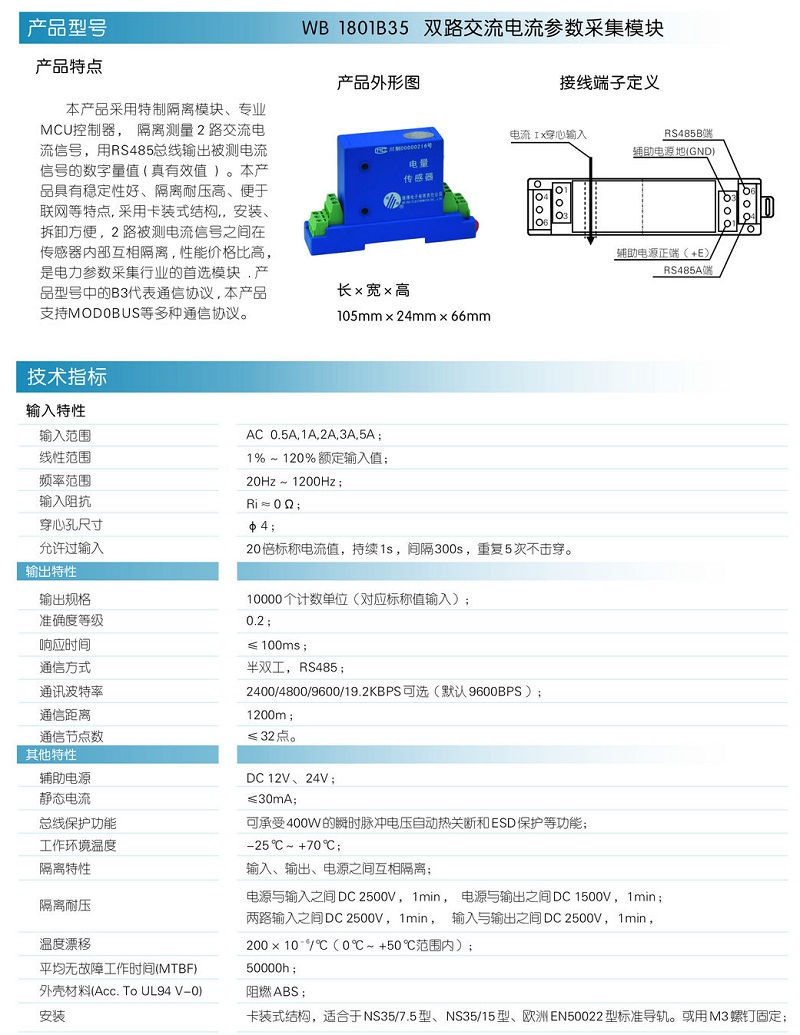 上一条:WB1800B35两路交流电压智能传感器