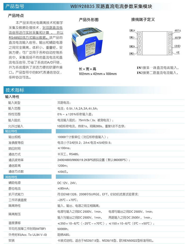 下一条:WB1929B35两路直流电压智能传感器