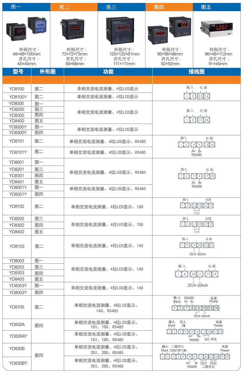 • 主要功能:四位数显,单相交流电流