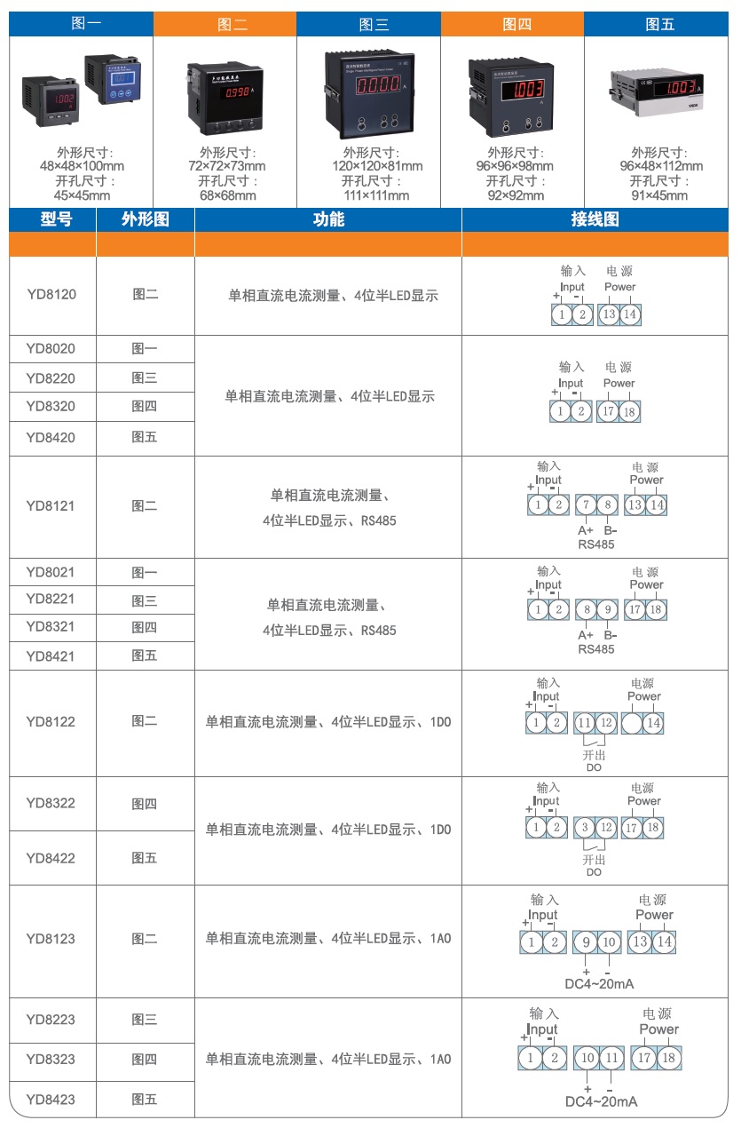 • 外观尺寸:外形尺寸:48*48*100mm;72*72*73mm;120*120*81mm;96*96*98mm;96*48*112mm