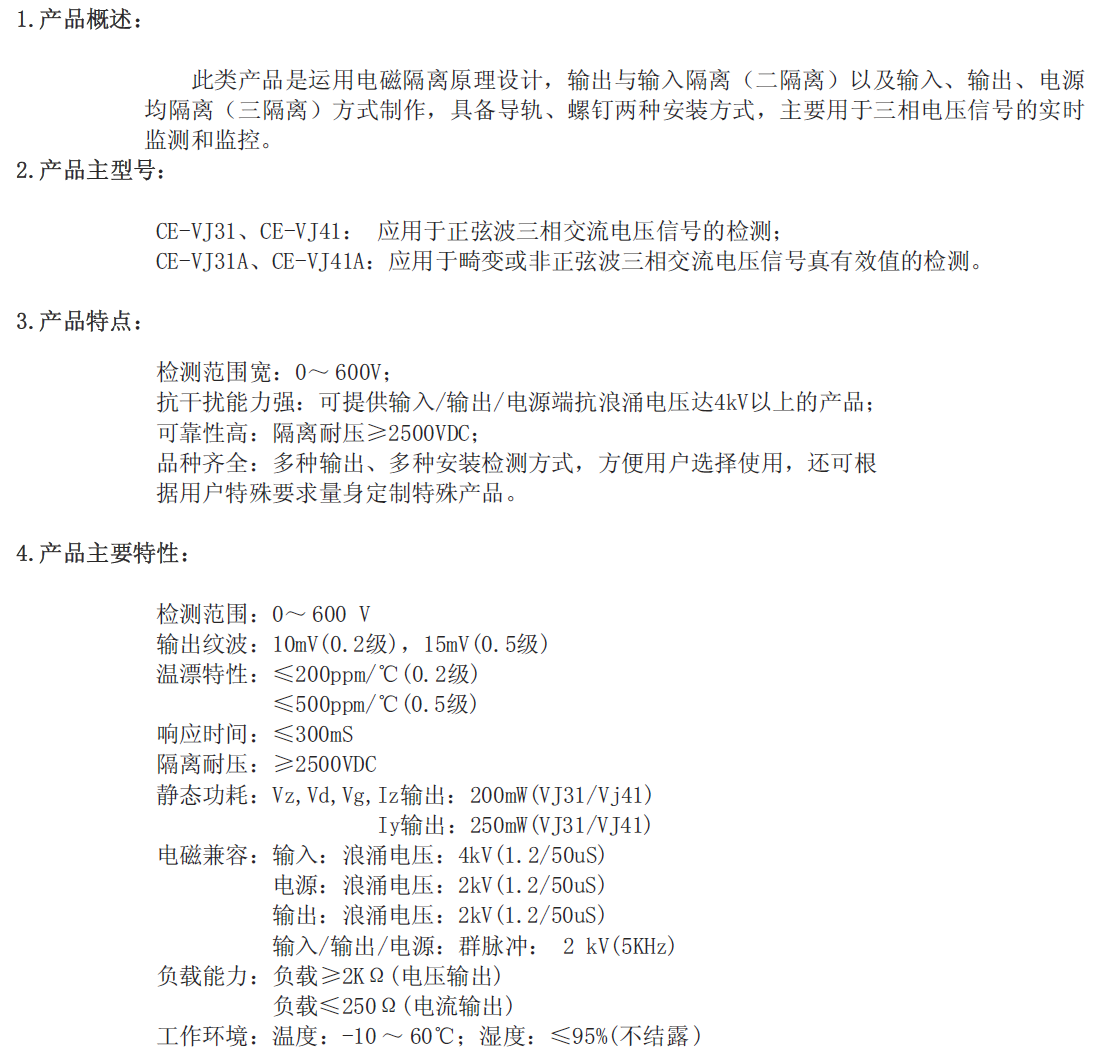 上一条:单路交流电压隔离传感器/变送器