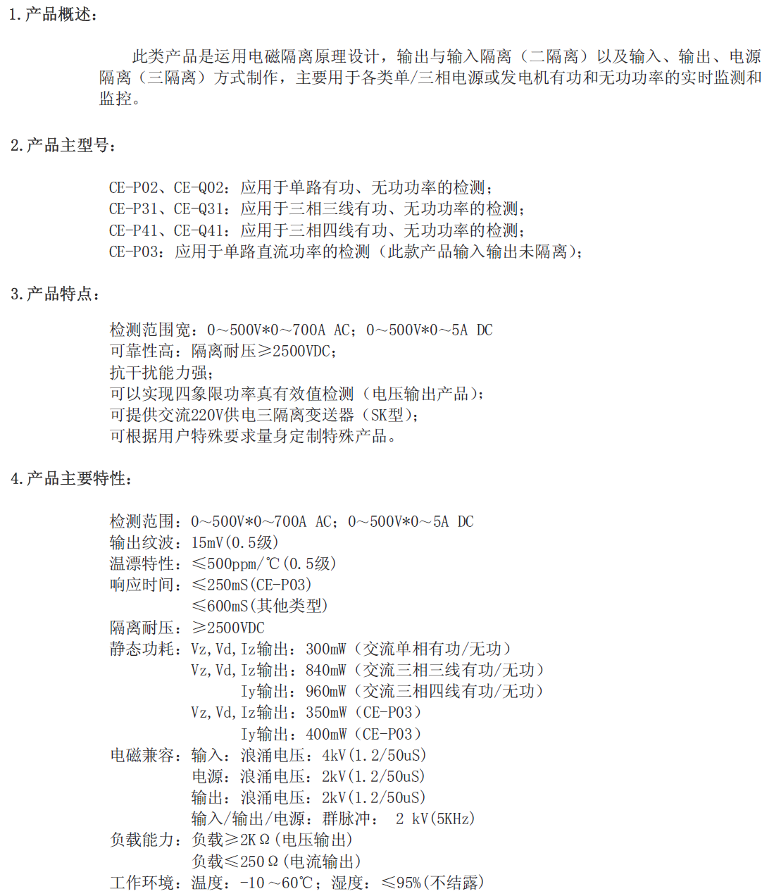 电量传感器 交流电流隔离传感器 直流电流隔离传感器 交直流通用型电流传感器 漏电流传感器 交流电压隔离传感器 直流电压隔离传感器 交直流通用型电压传感器 霍尔电流传感器 霍尔电压传感器 高精度霍尔传感器 频率传感器 功率传感器 调理器、配电器 越限报警传感器 无源交流采样器 智能电量传感器 WB系列配套产品 电测仪表 智能电力测控仪 单相全电量多功能数显表 单相交流电流智能数显表 单相交流电压智能数显表 三相交流电流多功能数显表 三相交流电压多功能数显表 三相电压和三相电流组合多功能数显表 直流电流智能数显表 直流电压智能数显表 频率、功率因数数显表 单数显表头 多功能智能电能表 三相单回路多功能智能电表 三相多回路多功能智能电表 单相多回路多功能智能电表 单相单回路多功能智能电表 直流电能表 数显控制仪表/无纸记录仪/过程校验仪 数显控制仪表 PID温控器 手动操作器 流量/热量积算控制仪 数字显示容积仪 台式打印控制仪 闪光报警器 无纸记录仪 过程校验仪 信号隔离器/安全栅 信号隔离器 信号配电器 安全栅 压力变送器/差压变送器 温度传感器 流量计/液位计
