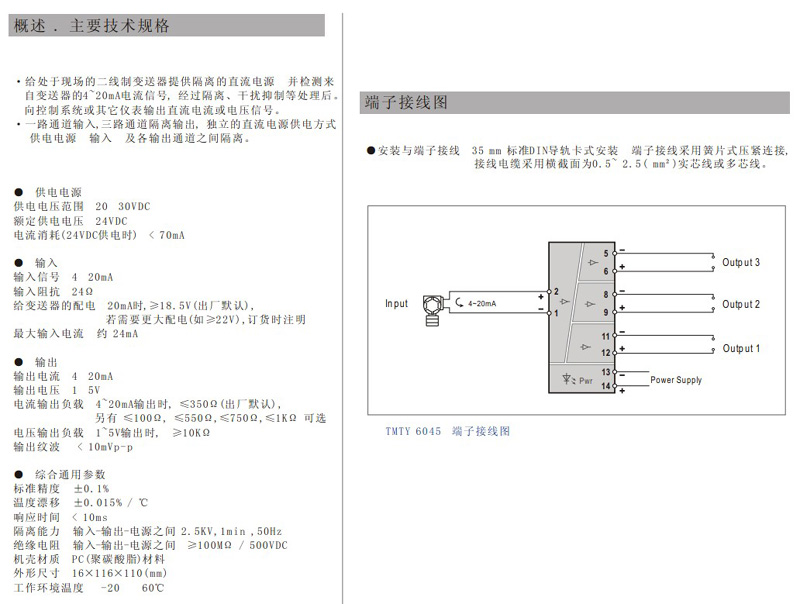 下一条: TMTY6042 1入4出 电流信号输入配电隔离器