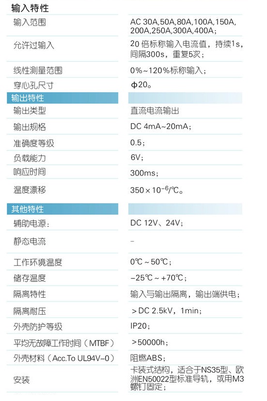 本产品采用特制隔离模块,对电网和电路中的交流电流进行实时测量,将其变换为二线制的标准直流电流(IZ)输出;具有高精度、高隔离、低功耗、低漂移,接线简单,抗干扰能力强,便于信号远传等特点。本产品采用卡装式结构,端子接线,安装方便,适用于电源设备、电力网监测自动化系统、工控监测系统、铁路信号系统等。