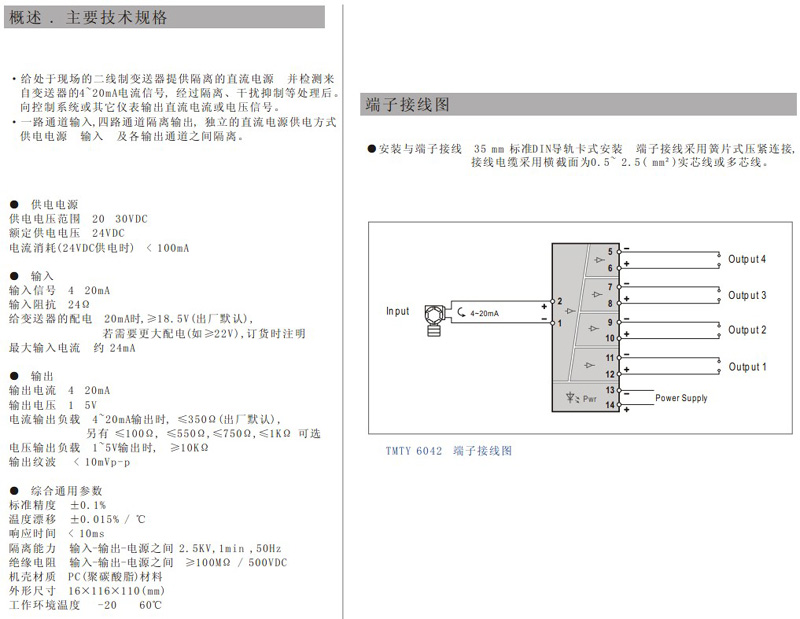 下一条:TMTY6043T 1入2出 电流信号输入配电隔离器