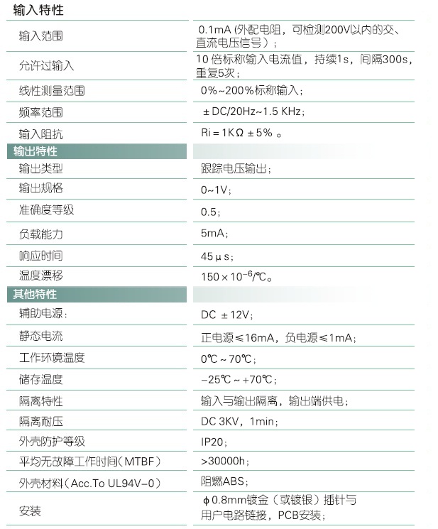 本产品采用线性光电隔离原理,对电网或电路中的交直流电流进行实时测量,将其变换为高速的跟踪电压(VG)输出;具有体积小、响应快、高精度、低漂移、高隔离、低功耗、宽频响等特点,适用于各种快速反应波形交直流电流的跟踪隔离测量。