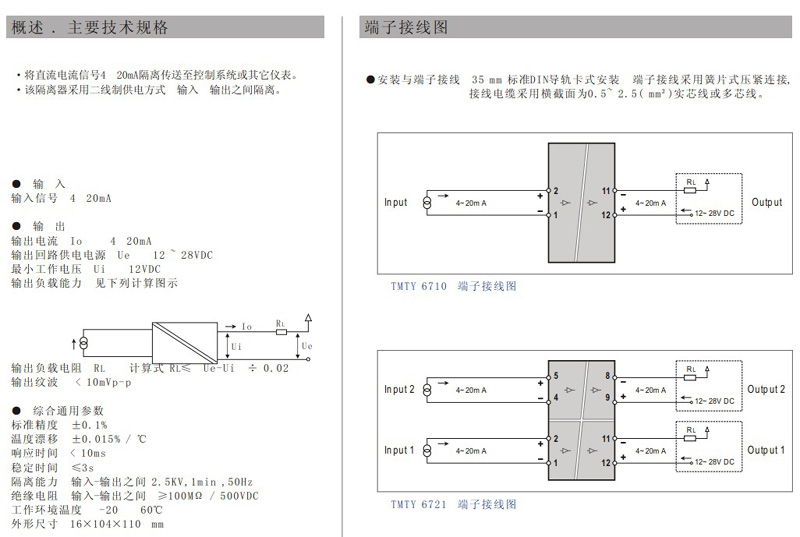 下一条: TMTY6716/6717 直流电压输入,两线制隔离器