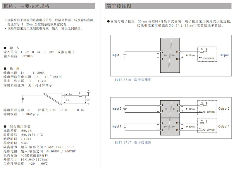 下一条: TMTY6760/6762 信号输入/输出双通道二线制隔离器