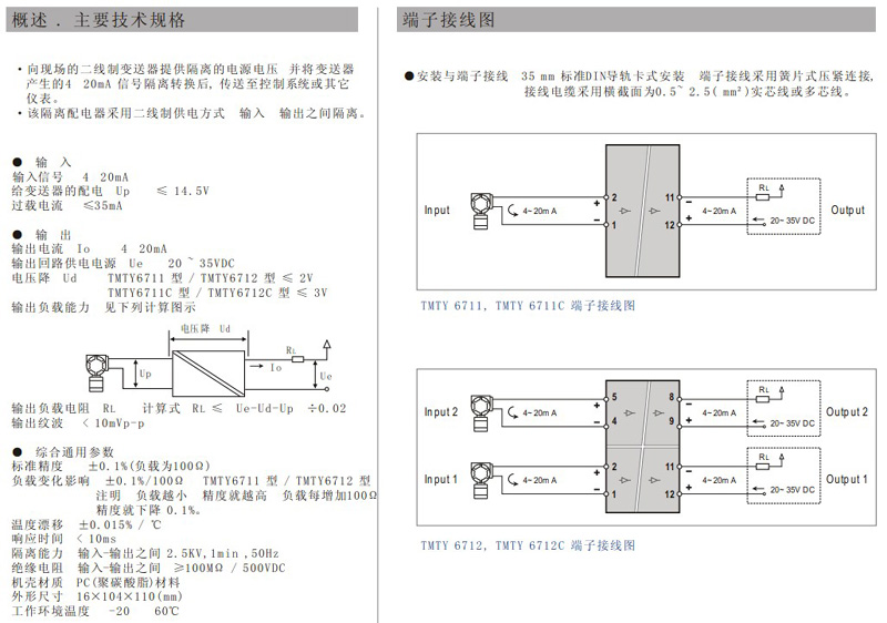 下一条:TMTY6713/6714 变送器电流输入,二线制隔离配电器